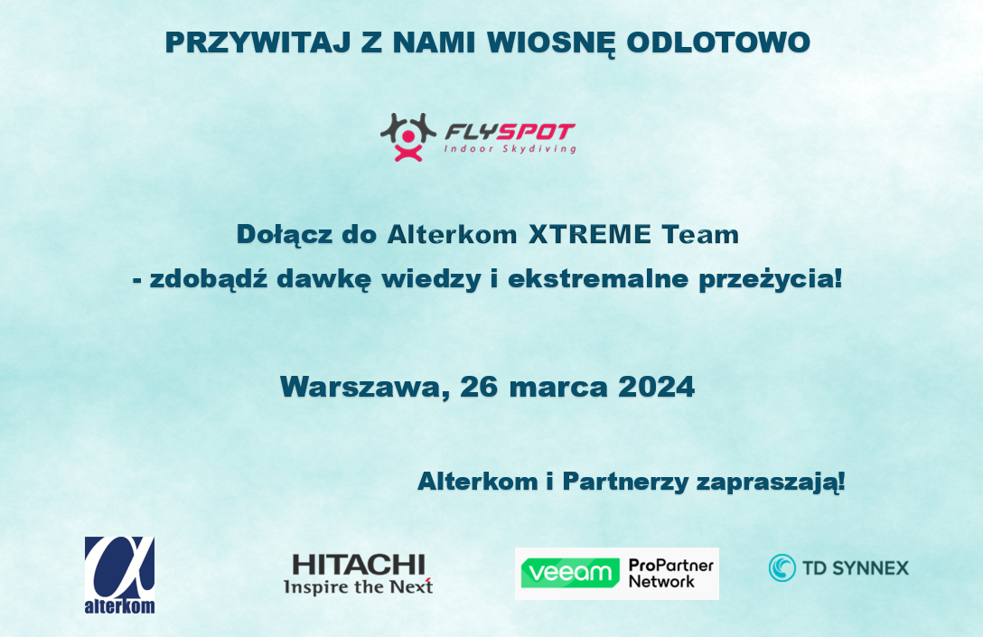 Alterkom XTREME Team wraz z Partnerami: Hitachi Polska oraz TD Synnex zapraszają na odlotowe wydarzenie.