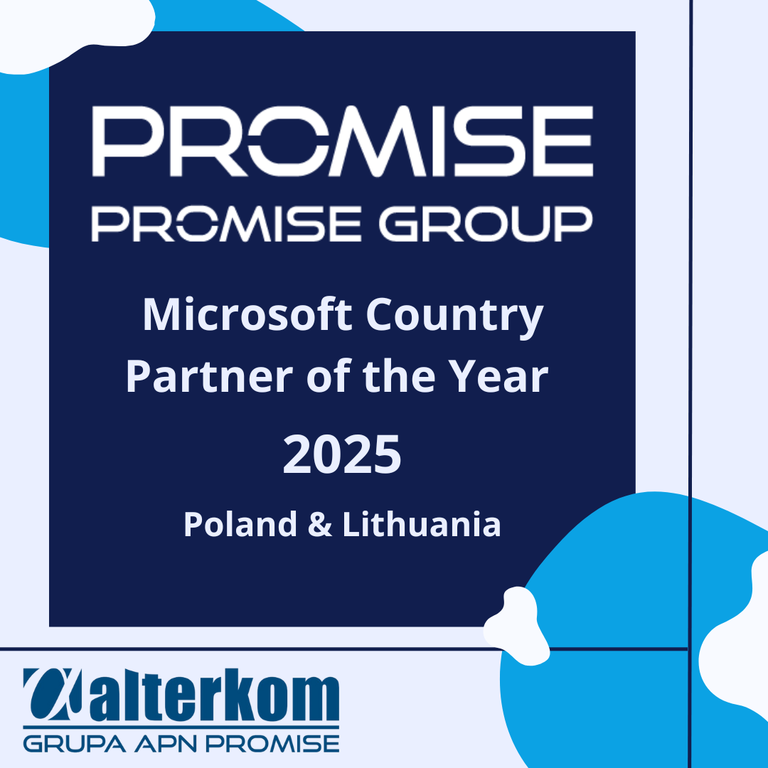 Grupa Promise, której jesteśmy częścią, została uhonorowana tytułem Microsoft Country Partner of the Year 2025 jednocześnie w Polsce i na Litwie. To nagroda przyznawana partnerom, którzy konsekwentnie wspierają klientów w budowaniu nowoczesnych rozwiązań opartych na technologiach Microsoft – od chmury i bezpieczeństwa, przez nowoczesne środowisko pracy, po projekty z obszaru AI i transformacji cyfrowej.